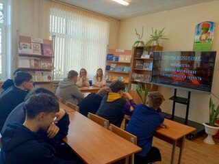 6 октября учащиеся из группы 13 св/в. приняли участие в блиц - опросе «Великая Отечественная война. Помним. А знаем?» Ребята отвечали на вопросы, посвященные Великой Отечественной войне, вспомнили основные даты, события, имена участников военных действий, смотрели отрывки из документальных фильмов, рассуждали о том, что память о страшных страницах истории нашей страны должна жить в наших сердцах, потому что мирное небо над нашей головой оплачено кровью миллионов ни в чем неповинных людей.