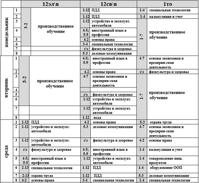Расписание учебных занятий